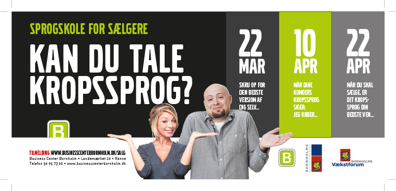Avisannonce leveret til Business Center Bornholm, som en del af en større kampagne for deres seminarer. / Kampagneplanlægning, tekst, grafisk koncept og produktion, presse med videre.